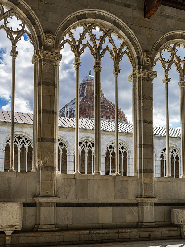 Sans sa mythique tour et les touristes qui affluent du monde entier pour se photographier devant elle, Pise ne serait pas Pise. Pas question de faire l’impasse sur cette visite et la vue panoramique qu’elle offre, pas question non plus de s’y prendre à la dernière minute sans coupe-file. Symbole de la cité médiévale toscane, la tour penchée a surtout le chic de se situer sur le Campo dei Miracoli, ou place des Miracles, lieu où se concentrent un ensemble d’édifices grandioses classés au patrimoine mondial de l’Unesco : la cathédrale il Duomo, référence architecturale du monde chrétien, son campanile (la fameuse tour penchée), le Baptistère et le Camposanto, cimetière de style gothique qui, avec ses fresques et sarcophages antiques, révèle des trésors insoupçonnés.