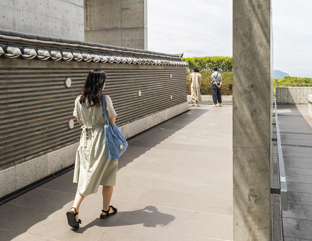Le Japon a Naoshima, la Corée du Sud a Jeju. Entre les forêts de pins, les orgues de basalte et les champs de sarrasin, cette île d’à peine mille kilomètres carrés a vu sortir de sa terre volcanique sacrée un étonnant laboratoire d’art et d’architecture contemporaine. En 1992, l’architecte Tadao Ando signait sur l’île japonaise le désormais célèbre Benesse House Museum, basé sur “la coexistence entre nature, art et architecture”. Vingt ans plus tard, il récidivait à Jeju, avec le Bonte Museum, dans lequel pousserait bientôt, là aussi, une citrouille géante de l’artiste Yayoi Kusama. Sur cette île mystérieuse cohabite désormais une profusion de lieux culturels, des plus anecdotiques (musées du chocolat ou de l’ours en peluche) aux plus émouvants tel le mémorial du 4.3 Peace Park, hommage aux victimes du soulèvement de 1948-49. Autre lieu poétique, le musée dédié au Coréen Kim Tschang-yeul (1929-2021), dans les montagnes de Jeoji-ri, lien architectural entre l’œuvre du plasticien, basée sur les gouttes d’eau, et les paysages ruisselants. Réalisée par l’agence séoulite Archiplan, la structure fait écho au travail de Ando.