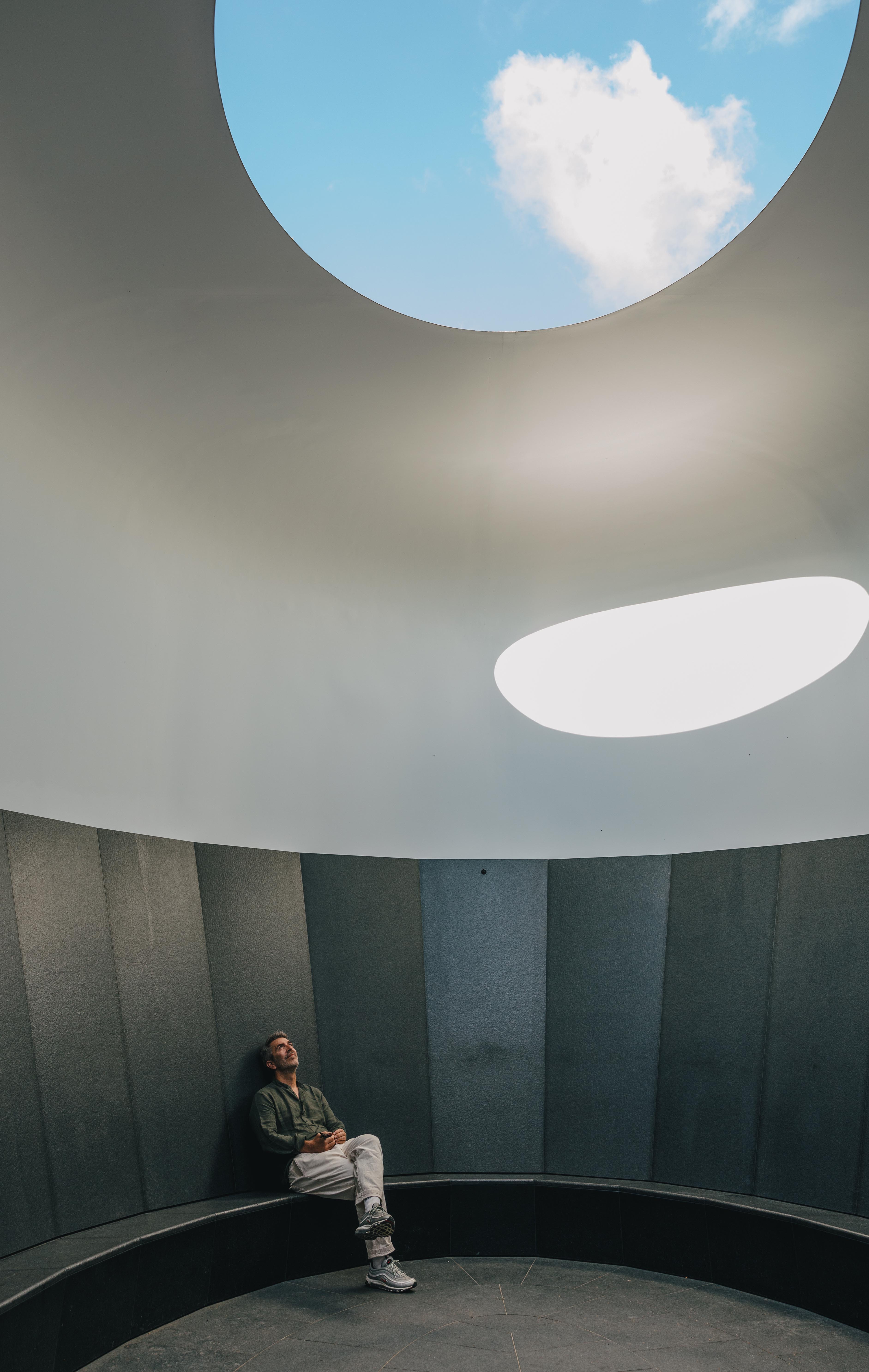 À 1780 mètres d’altitude, sur les hauteurs de Lech, James Turrell a installé un Skyspace : un cône aux proportions parfaites, enfoui dans le paysage, ouvert sur le ciel. L’artiste américain, figure majeure de l’art contemporain, travaille la lumière comme une matière première. Depuis les années 1960, ses installations brouillent les repères et transforment la perception de l’espace. Californien, partagé entre Los Angeles et le désert de l’Arizona, Turrell nourrit une relation intime à la lumière et aux grands espaces. Son œuvre majeure, le Roden Crater, observatoire cosmique creusé dans un volcan éteint, résume cette obsession pour le temps et les phénomènes célestes. Le Skyspace Lech en est un prolongement alpin : une chambre de perception où le ciel devient surface picturale. L’expérience est minimale – un cadre, un horizon, une lumière – mais elle modifie profondément la manière de regarder un paysage.