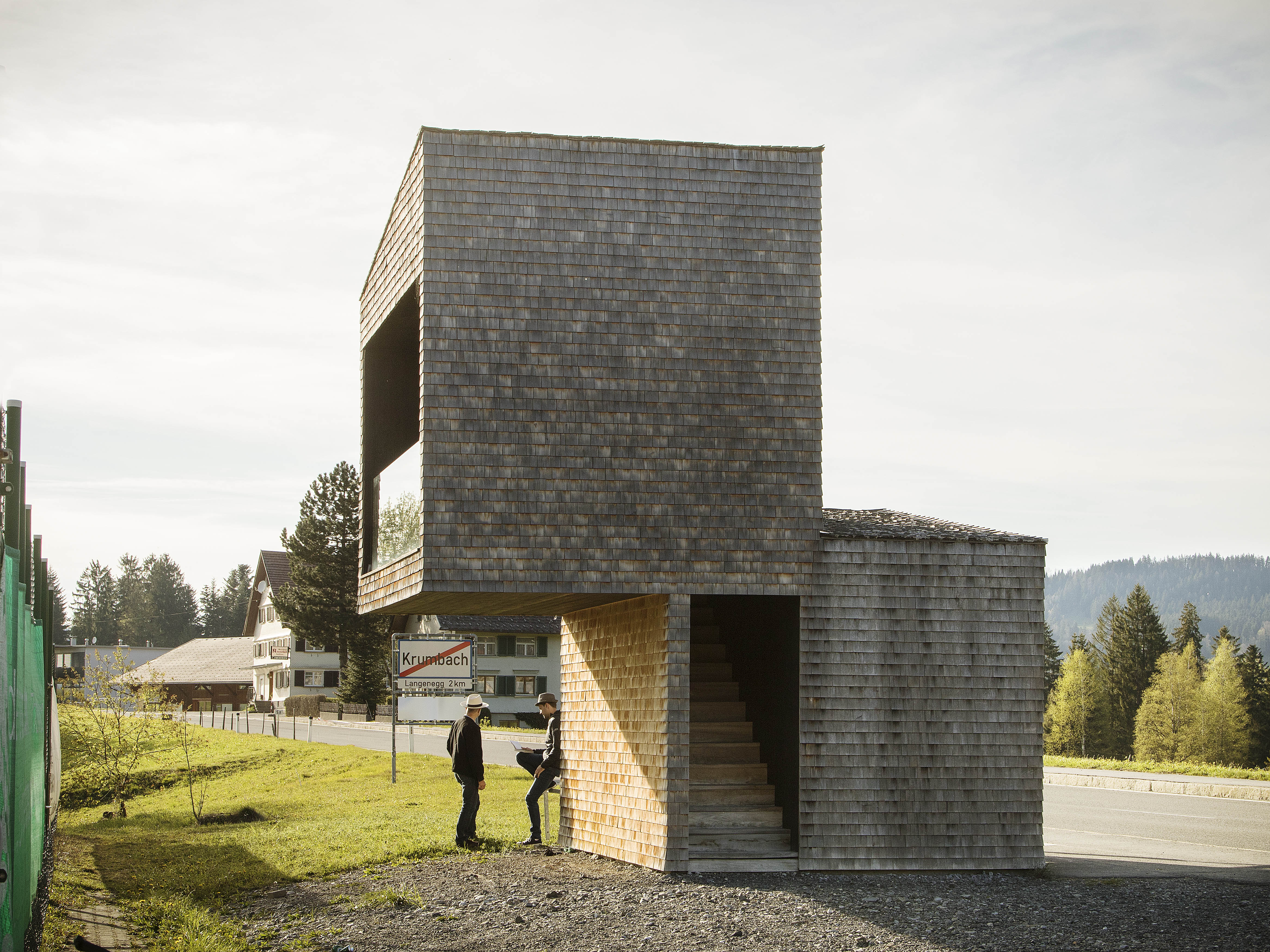 En 2013, le petit village de Krumbach – mille habitants au cœur du Bregenzerwald – lance un pari audacieux : inviter sept architectes de renom venus de Belgique, de Norvège, d’Espagne, du Chili, du Japon, de Chine et de Russie à concevoir ses abribus. Les projets sont ensuite réalisés par les artisans locaux, dans un dialogue entre savoir-faire traditionnel et création contemporaine. L’objectif est double : enrichir le paysage architectural et donner envie d’emprunter les transports publics, plus respectueux du climat. Chaque abri raconte une histoire. Les Espagnols Antón García Abril et Débora Mesa (Ensamble Studio) se sont inspirés des planches entassées dans les entrepôts de menuiserie pour imaginer une structure sobre et fonctionnelle. Le Russe Alexandre Brodsky a dessiné une tour de bois épurée, percée d’ouvertures sur chaque face. Le trio belge Jan de Vylder, Inge Vinck et Jo Taillieu a proposé un pliage de plaques d’acier triangulaires, évocation abstraite des montagnes environnantes. Quant au Japonais Sou Fujimoto, il a conçu une structure ouverte en fines tiges métalliques, traversée par un escalier en spirale : un objet qui n’est plus seulement un abri, mais une invitation à expérimenter autrement l’espace et la nature. Ensemble, ces sept abribus transforment un geste banal du quotidien en expérience architecturale et poétique.
