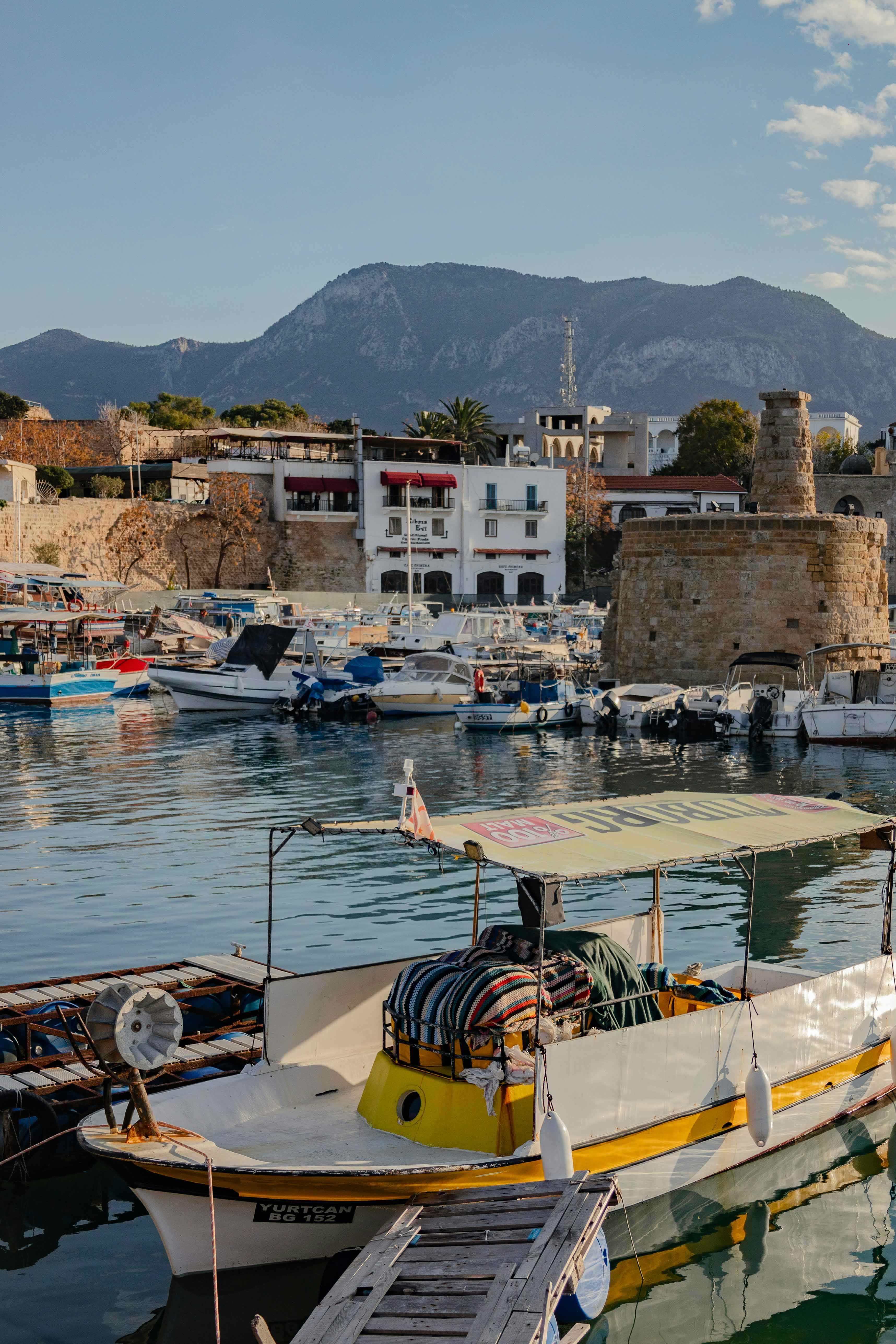À une trentaine de kilomètres au nord de Nicosie, la jolie ville pittoresque de Kyrénia trempe ses jambes dans la Méditerranée. Au bout de l’ancien port, les Vénitiens ont laissé un château (Girne Kalesi), construit au XVIe siècle au-dessus de fortifications datant de l’époque des croisades. Telle des poupées russes, on découvre à l’intérieur d’autres édifices : une église byzantine du XIIe siècle et deux musées, sans oublier la célèbre épave de Kyrénia, restes d’un navire marchand grec datant du IVe siècle. En surplomb de Kyrénia, perché à 220 mètres de hauteur, le monastère de Bellapais (XIIIe siècle) offre une vue spectaculaire sur toute la ville, son port et la Méditerranée. En y croyant très fort, on pourrait presque voir la Turquie, distante d’une centaine de kilomètres, se dessiner à l’horizon.