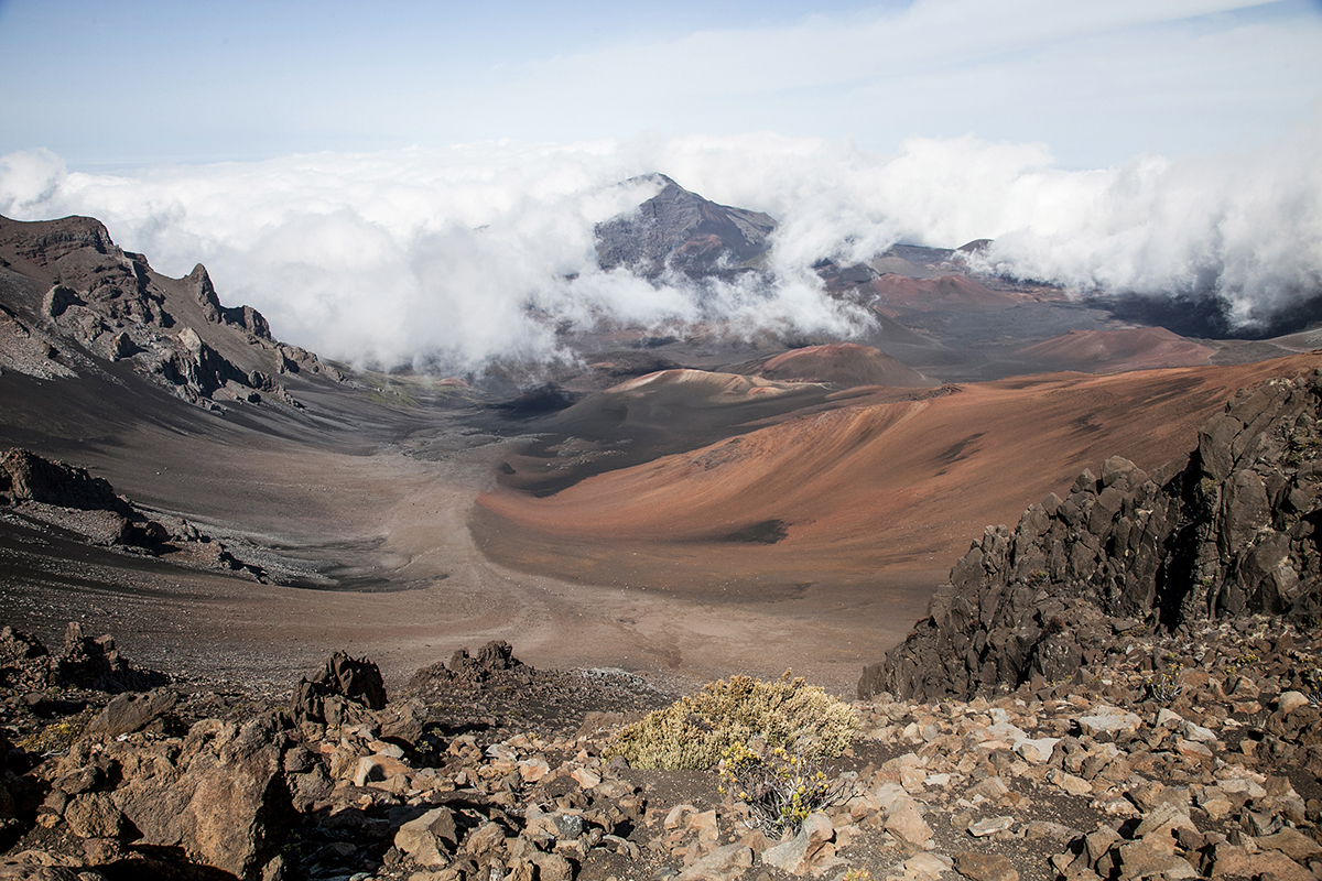 C’est ici que tout commence. À 3 055 mètres d’altitude, le volcan Haleakalā domine l’île comme un dieu endormi. Les Hawaïens disent que le demi-dieu Māui y captura jadis le soleil pour rallonger les jours. On comprend pourquoi, quand on assiste à l’aube depuis le sommet. Les premiers rayons se lèvent lentement sur la mer de nuages, inondant les cratères d’une lumière dorée presque irréelle. Redescendre le long de la route sinueuse, c’est traverser tous les climats de l’île : les extraordinaires « épées d’argent », plantes endémiques du Haleakalā, semblant venues d’un autre monde, laissent bientôt place aux forêts de conifères, aux pâturages où paissent les vaches puis à la tiédeur moite des tropiques. Haleakalā, c’est la Hawaï cosmique, celle qui rappelle que l’île est née de la lave et du ciel.