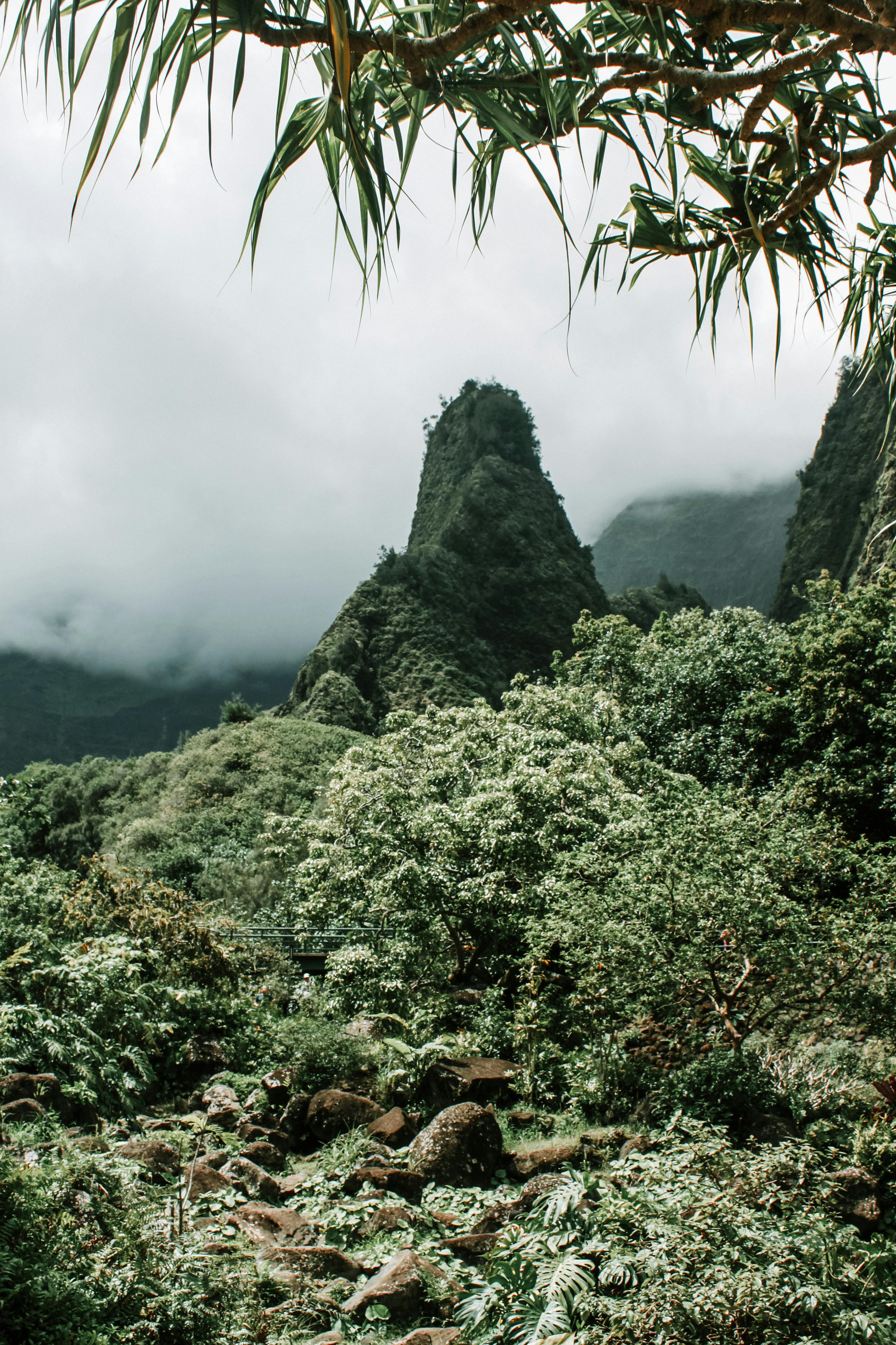 Au centre de Maui, la vallée d’Iao est un sanctuaire végétal où se mêlent histoire et spiritualité. C’est ici que s’est jouée en 1790 la bataille de Kepaniwai, décisive pour l’unification du royaume de Hawaï. Aujourd’hui, l’endroit est redevenu paisible : la végétation y explose dans un vert profond, traversée par des rivières cristallines et des nuées de brume. L’aiguille d’Iao (Iao Needle), formation rocheuse de 370 mètres, surgit de la forêt comme un totem. Autour, tout n’est que fougères géantes et oiseaux invisibles. En marchant dans la vallée, on pénètre un lieu vivant, presque sacré — un souffle ancien qui relie la terre, l’eau et les ancêtres.