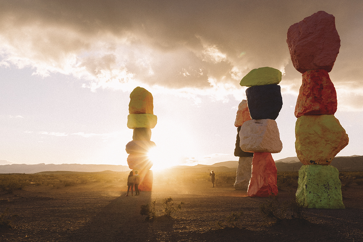 Cités-dortoirs et champs d’éoliennes s’effacent peu à peu à la faveur des étendues minérales du désert des Mojaves. Message de nos doubles : ils sont dans la Vallée de la Mort, le point le plus chaud d’Amérique du Nord. Nos enfants lèvent un sourcil perplexe. Cela sonne comme un passage infranchissable de jeu vidéo. Death Valley – GAME OVER. Puis nous parvient une photo d’un chaos de roches volcaniques, pics et crevasses beiges, blancs, rouges. Cela rappelle à la petite dernière certaines œuvres du Getty Center de L.A. Quand son frère lit “Welcome to Fabulous Las Vegas!” sur un panneau multicolore, c’est le branlebas de combat à l’arrière. On s’agite, on se tord le cou, on veut ouvrir les vitres pour apercevoir en entier les hôtels géants qui s’alignent le long du Strip et, avec eux, la tour Eiffel, les canaux de Venise, les pyramides d’Égypte, les colonnes de la Rome antique… Sans oublier les tyroliennes, les montagnes russes et cette foule hétéroclite qui rivalise d’exubérance. Dans les déserts d’ici apparaissent décidément de drôles de mirages. Sur la moquette kitsch des casinos, sous 15°C de clim, le brouhaha électronique électrise tout le monde, le mythique show eau/son/lumière du Bellagio aussi. Ardent, le soleil n’épargne personne et les piscines de l’hôtel deviennent rapidement notre lieu préféré sur terre. Après un ultime tour de Strip, les enfants, le front collé à la fenêtre de la chambre, scrutent par-delà les buildings : le désert.