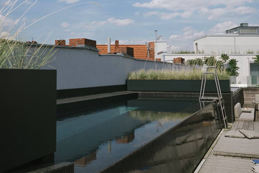Dès votre arrivée, direction Berlin-Ouest, cette ancienne zone contrôlée par les Alliés dont le caractère ultra permissif et les bas loyers ont attiré artistes et musiciens, donnant naissance à une véritable culture underground. Votre adresse est caractéristique de ce renouveau à la berlinoise : ses murs sont ceux d’anciens édifices publics du XIXe siècle ayant fait l’objet d’importantes rénovations par un cabinet d’architecture allemand. L’entrée se fait via un ancien palais de justice aux airs de castel avant de rejoindre, par une extension de briques rouges, une ancienne prison pour femmes. Du style carcéral, quelques caractéristiques demeurent, comme le grand escalier autour duquel s’articulent des chambres. Pour le reste, l’impression d’ensemble est celle d’un cocon ensoleillé ceint de verdure. Accolés au jardin, le restaurant et le bar accueillent sous de belles voûtes les visiteurs en quête de saveurs traditionnelles revisitées et d’une atmosphère feutrée. Pour un autre moment délicieux, direction le rooftop où trône la piscine extérieure, ouverte en saison.