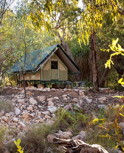 À l'arrivée, installation pour deux nuits au cœur du parc national, au bord de la rivière Piccaninny. Le campement regroupe une trentaine de tentes. Simples ? Pas tant que ça, étant dotées de salles de bain privées. Cela reste étonnamment confortable compte tenu du contexte. Votre tablette ? Laissez-la au fond de la valise, il serait surprenant qu’elle fonctionne ici. D'ailleurs, tout cela a finalement peu d'importance : le vrai luxe se trouve dehors, dans les paysages bruts et indomptés.