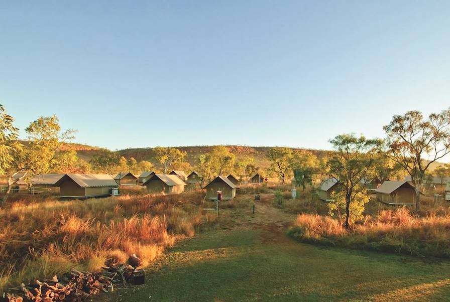 Installation pour deux nuits sur les terres de la communauté aborigène d'Imintji, le long de Saddlers Creek. L'adresse offre une vue imprenable sur les Wunaamin Miliwundi Ranges. Chaque tente arborant une terrasse privée, on profite, en plus du panorama, d'une intimité parfaite pour les couchers et levers de soleil qui embrasent les paysages alentour. Enfin, en termes de confort, l'essentiel est assuré : salle de bains privative, bar, salon. On s'y sent bien.