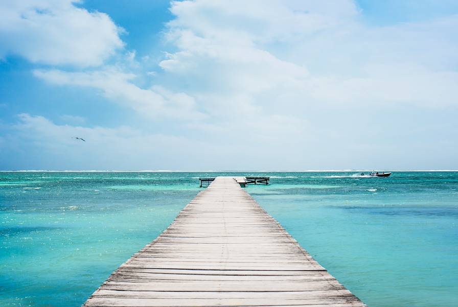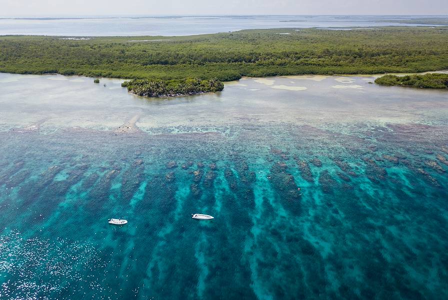 On jette l'ancre au large de Half Moon Caye îlot paradisiaque portant bien son nom. Il s'agit en effet d'un croissant - non pas de lune, mais de nature préservée -, et de la plus ancienne zone marine protégée d'Amérique centrale. On s'y baigne dans des eaux translucides révélant de formidables fonds marins - raies léopard, tortues, éponges de mer, coraux, anguilles... - que l'on explore à sa guise avec masque, palmes et tuba. Sur terre, les plages dorées laissent la place à une merveilleuse forêt littorale où l'on se délecte des allées et venues des fous à pieds rouges, pêcheurs émérites plongeant dans la mer à une vitesse folle pour faire le plein de calamars et petits poissons.
