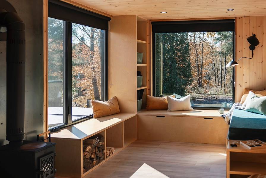 Installation pour deux nuits aux abords du parc national de la Mauricie, entre le chuchotement de la rivière et la silhouette des montagnes. Cabanes en bois, chalets, caravane Airstream (so american) : les différentes options d'hébergement ont en commun une connexion avec la nature. À l'intérieur, la décoration mêle élégance et rusticité pour créer des espaces chaleureux où l'on se sent bien. Le petit plus pour votre tribu : une intimité préservée avec seulement trois chambres sur place. Dehors, le sauna finlandais attend les plus grands. Et tous peuvent embarquer à bord des kayaks et paddles mis à disposition aux beaux jours.