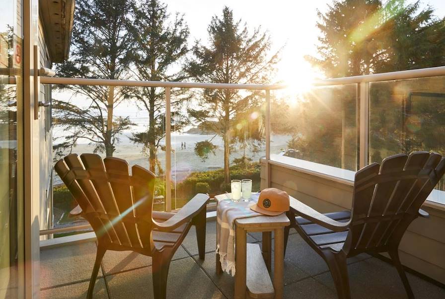 Route pour Horseshoe Bay où vous embarquez, avec votre voiture, à bord d'un ferry à destination de Nanaimo, sur l'île de Vancouver. A vous alors l'autoroute du Pacific Rim qui traverse l'île d'est en ouest et vous permet de rejoindre Tofino rapidement. Installation pour trois nuits à quelques kilomètres de la ville, dans un hôtel posé entre forêt et océan. Les suites, modernes et lumineuses, sont équipées d'une cuisine et prolongées d'un balcon. Le vôtre a vue sur le Pacifique.