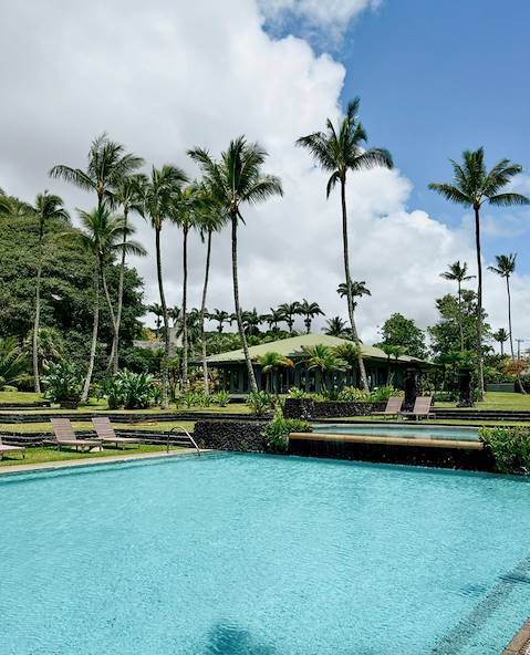 À l'arrivée, installation pour la nuit dans un refuge littoral reflétant parfaitement le calme et la beauté de la petite ville de Hana. L'hôtel, posé juste à côté d'une petite plage, s'insère avec grâce dans son environnement, la piscine se fond avec l'horizon. Une option tout indiquée en fin de voyage.