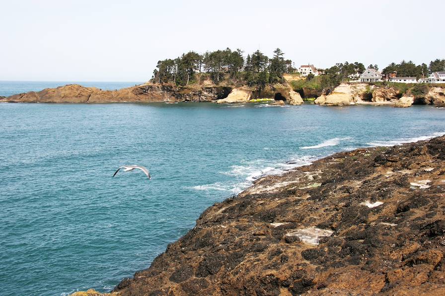 À Depoe Bay, installation pour la nuit dans un petit lodge aux pratiques responsables – construction, rénovation et gestion – envers son environnement et ses équipes. À l'intérieur, un style minimaliste qui s'accorde à l'utilisation de matériaux durables et d'origine locale. Votre chambre, lumineuse, a vue sur le port. Largement tournée vers le Pacifique, la ville abrite de nombreux restaurants spécialisés dans les produits de la mer. On ne manquera pas d'aller goûter une bonne chowder (soupe crémeuse aux fruits de mer) ou le fameux dungeness crab, dont la taille des pinces en impressionnera (et régalera) sûrement plus d'un...