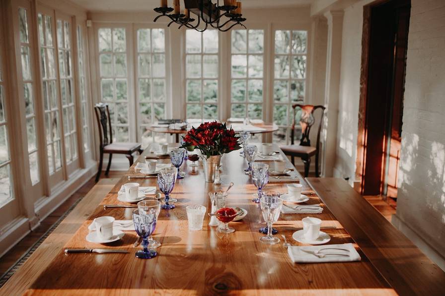 Installation pour deux nuits dans une maison d'époque au charme sudiste, classée au National Register of Historic Places. Pour proche qu'elle soit du centre-ville, on a tout de même le sentiment d'y être au vert. Bâtie en 1820 à l'initiative d'un ancien gouverneur français de Louisiane, la demeure dévoile des espaces dont la décoration actuelle reprend les codes d'autrefois. Ainsi, les lits à baldaquin côtoient les vieux meubles en bois dans une atmosphère générale de modernité.