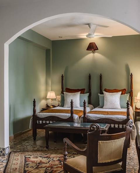 Difficile d'imaginer que, au XVIIIe, cet imposant bâtiment situé à 1h30 de Chandigarh n'était qu'une annexe du complexe royal, pensée pour recevoir les invités du maharaja. Tombé en désuétude, le "palace" a perdu de sa superbe avant d'être repris en main, une célèbre architecte indienne aux commandes. Réouvert récemment, l'édifice propose une plongée dans l'opulence d'antan, entre chandeliers scintillants, tapis soyeux, sols en marbre et mobilier en bois sculpté. On compte seulement 25 chambres – c'est que celles-ci font honneur, en termes de proportion, à la nature royale des lieux. Au restaurant, les saveurs du Punjab sont à l'honneur. Le petit déjeuner se prend dans la galerie d'art. Dehors, la piscine apparaît enveloppée de séduisants murs roses.