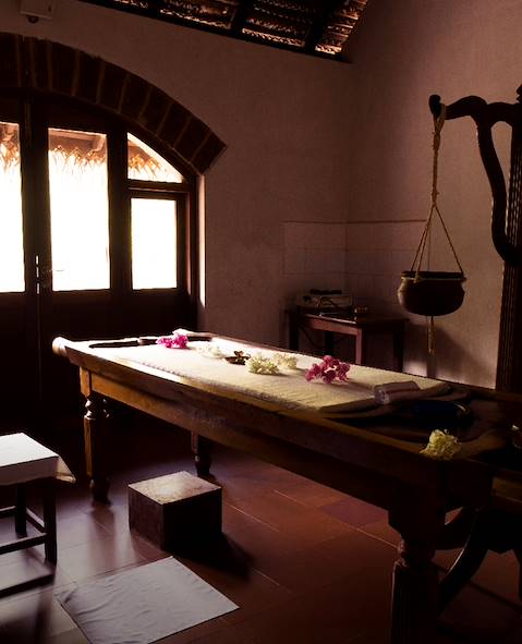 Né en Inde du Sud il y a environ 5000 ans, l’ayurvéda s’impose comme la plus vieille médecine du monde, désormais reconnue de façon officielle par l’Organisation mondiale de la Santé (OMS). Une science de la vie dont l’approche holistique attire de plus en plus d’Occidentaux en quête d’équilibre. Personnalisé, l'ayurvéda considère les dimensions physiques, psychiques, émotionnelles et spirituelles propres à tout individu. En chacun de nous, l'éther (âkaâsha), l'air (vâyu), le feu (tejas), l'eau (jala) et la terre (prithivi) s'associent pour former trois doshas, des complexions propres à chaque personne. Ces doshas sont affectés par les relations que l'on entretient avec le monde. Ainsi, cadre de vie, alimentation, digestion et stress influencent en bien ou en mal l'être tout entier. S'y ajoutent les émotions liées à la vie amoureuse, familiale, professionnelle. À travers une discipline alimentaire, des massages, des sessions de phytothérapie et de yoga, l’ayurvéda vise à rétablir l’équilibre initial. Alors, sur le sable de la plage d'Om déployée face à la mer d'Arabie, réveil matinal pour surprendre les premières lueurs du jour, dans un ravissement de méditant. Doucement, on se laisse happer par la journée et le programme délicieusement immuable d'une cure ayurvédique personnalisée – massage, yoga, massage à nouveau – sous l’œil attentif des médecins qui se relaient pour surveiller religieusement ces corps pétris en voie de résurrection. Le temps devient élastique, étirable, les repères s'effondrent et la cure agit, là, au contact d'une nature généreuse et bienfaisante.