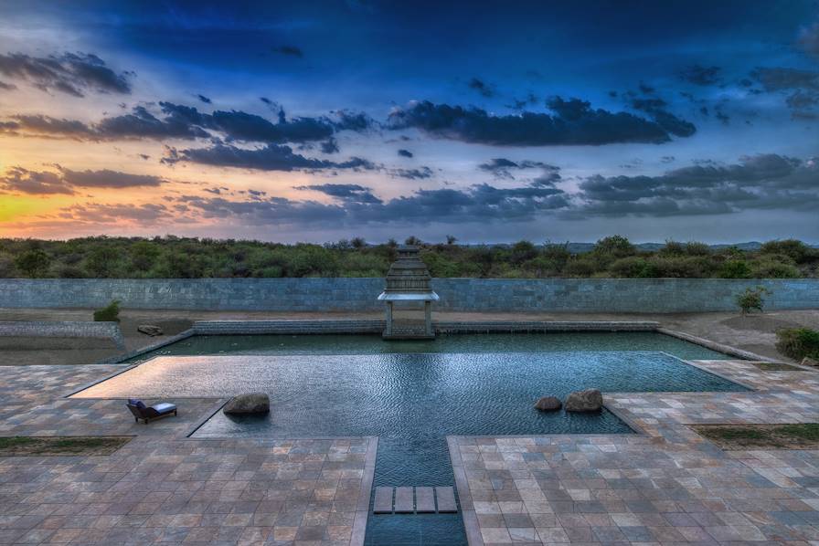 Route d’une journée pour rejoindre Hampi et installation pour deux nuits à quelques kilomètres du site sacré. Ce palais, tout en étant d’aujourd’hui, nous replonge au XIVe siècle, dans les grandes heures de l’empire de Vijayanagara. Architecture indo-islamique, espaces fastueux, glamour et confort contemporain, on cumule les plaisirs visuels. Et les atouts : piscine à débordement, spa ayurvédique et cuisine indienne servie dans de la porcelaine et du cristal. Royal.