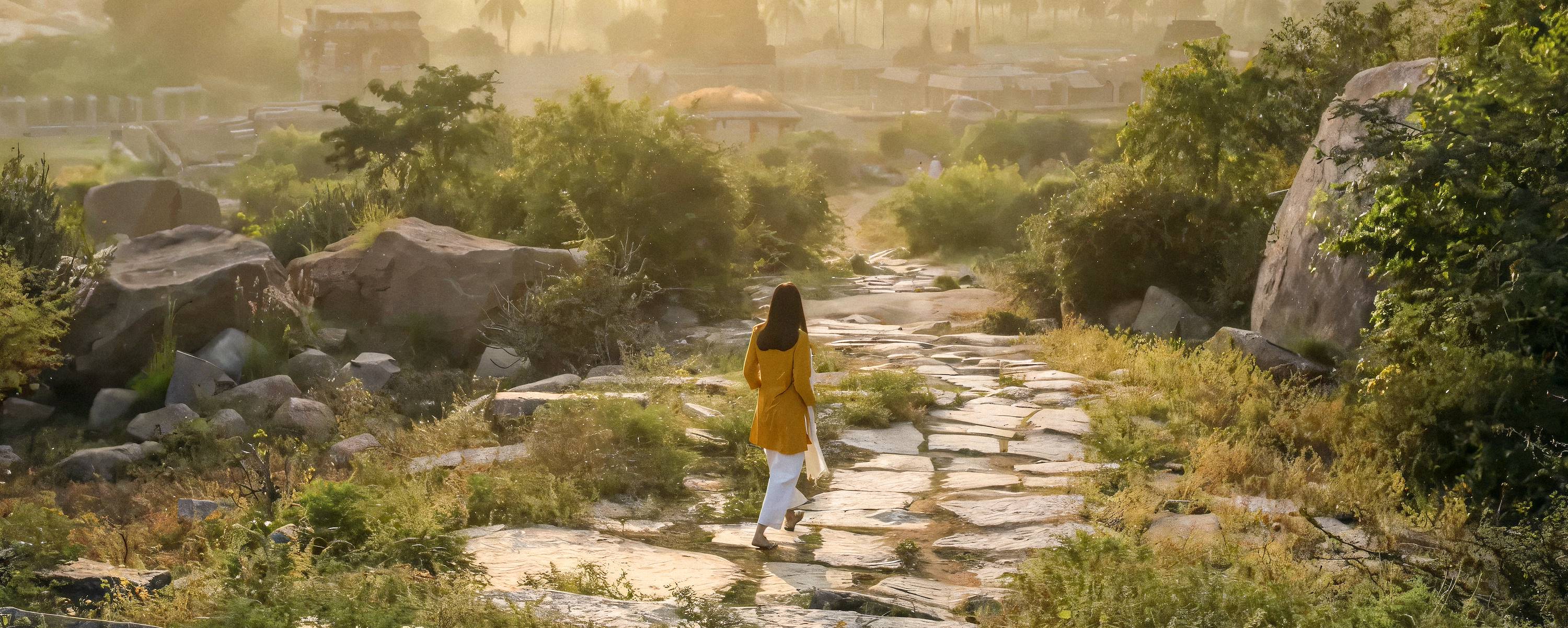 Au programme - La visite privée d’Anegundi. C’est à vélo que l’on parcourt le village d’Anegundi, posé de l’autre côté de la rivière Tungabhadra, mais intégré à Hampi. Plusieurs castes et religions vivent en harmonie dans ce lieu où certaines maisons home heritage ont été rénovées selon les techniques artisanales locales. Ici, l’ONG Kishinda Trust a développé de nombreuses activités qui font travailler une grande partie des habitants du village.