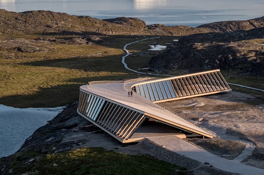 Traversée en ferry pour Ilimanaq (environ une heure) et installation pour la nuit au sein d'une adresse intimiste. Au bord de la falaise, de petits chalets en duplex sont dispersés. A l'intérieur, une décoration de style nordique. De grandes baies vitrées offrent un lien permanent avec l'extérieur. On s'installe sur la terrasse, avec l'espoir de voir passer une baleine, au milieu du fjord...