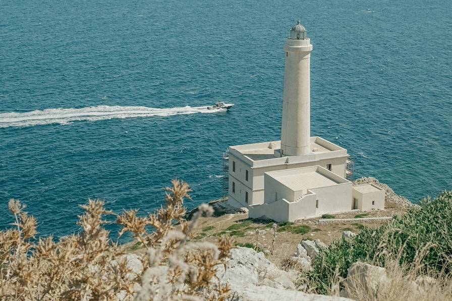 L’itinéraire le plus direct pour rejoindre Castrignano del Capo passe par les terres ; le plus beau longe les falaises ourlées d’eau. En vacances, sacrifier une heure de route sur l’autel de la beauté n’est pas grand-chose, c’est même le sens du voyage. Piquez donc vers l’Adriatique pour rejoindre le hameau d’Otrante, ancien avant-poste grec en territoire italien. La cité respire cet héritage hellénistique, entre paysages minéraux et pierres blanches. De là débute la route côtière Litoranea. L’itinéraire suit la ligne claire de la mer Adriatique tandis que, à l’horizon, les lignes des îles grecques et montagnes albanaises se devinent.