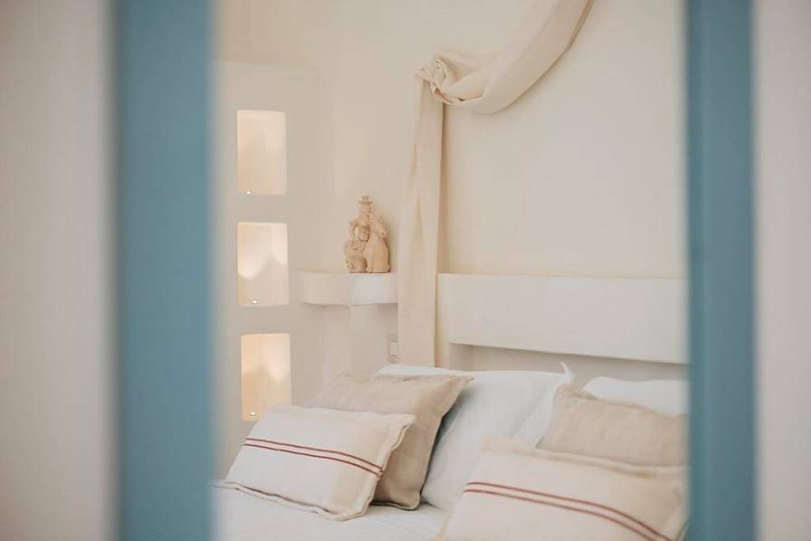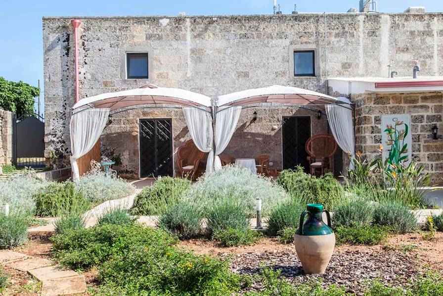 À Manduria, installation pour la nuit dans une masseria lovée entre vignes et oliviers. Les bâtiments sont construits dans une pierre dont la patine grise s’éclaircit à la lumière jusqu’à sembler blanche. La cour dallée relève du splendide et maints détails d’architecture dénotent un sens esthétique étonnant. Côté restaurant, la maison fait honneur aux ingrédients issus de la propriété. Tout aussi délicieux sont les massages et cours de yoga proposés sur place. Quant aux plus belles plages du coin, elles se rejoignent en un coup d’auto.