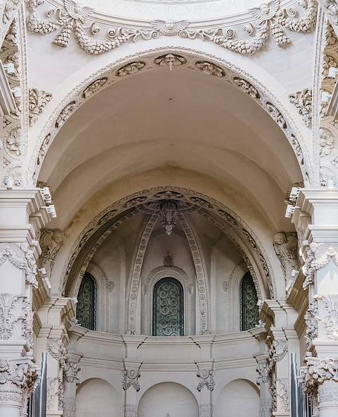 Le baroque de Lecce est solaire. Quelques ouvrages Renaissance, le Sedile, le château de Charles Quint, les fresques de la Chiesa dei Santi Niccolo e Cataldo, et puis c’est la vague baroque. Parmi les plus étourdissantes réalisations de cette période : la place du dôme, la cathédrale de l’Assomption de la Sainte Vierge (terminée en 1682) et ses palais ; la basilique Santa Crocce...