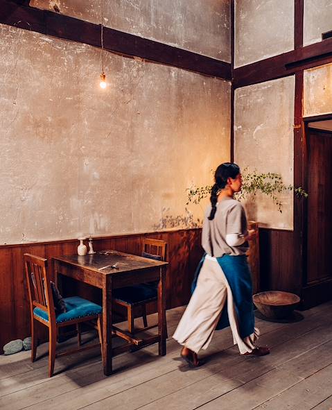 Parvenu à Toyama, installation pour deux nuits dans une ferme centenaire installée en retrait du monde, au milieu des champs de riz. La rénovation méticuleuse du site il y a quelques années s'est faite au moyen de matériaux japonais – argile, bois, soie et washi. Aujourd'hui, il abrite trois chambres vastes et modernes dont les thèmes apparaissent comme autant de déclinaisons d'un retour aux sources, chacune prolongée d'une terrasse. Des œuvres mettant à l'honneur le mouvement d'art populaire "Mingei" parsèment les différentes pièces, des espaces communs jusqu'aux particuliers. Au restaurant, le chef propose son interprétation de la gastronomie italienne à l'aide de produits locaux (pêche sélectionnée sur les quais à quelques kilomètres, gibier chassé dans les montagnes environnantes).
