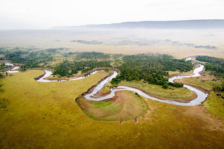 Vol pour le Masai Mara. Installation pour deux nuits dans la Mara North Conservancy, contigüe à la Maasai Mara National Reserve. L’impression première est de se trouver loin de tout. Enfin, de tout ce qu’on connaît. Au contact direct d’une nature hors normes. Les tentes se dissimulent dans un bosquet de muthiga et de ficus. Parce qu'il n'est pas permanent, le camp est léger – sans être pour cela spartiate. On est étonné au contraire par le confort qu’il dispense. Aussi bien que d’autres matériaux, la toile protège le particulier. Et puis, elle a un charme bien en résonnance avec la brousse. Bois ciré, cuivre, acajou, belles étoffes, le style ajoute au plaisir. Sur le devant de son chez soi – lequel s’ouvre largement – une véranda avec hamac. Le soir, les bruits de la nature vous entourent. Au mess, la cuisine se révèle agréablement afro-méditerranéenne. L’énergie nécessaire au bon fonctionnement d’ensemble est exclusivement d’origine solaire. La nature fournit à tout.