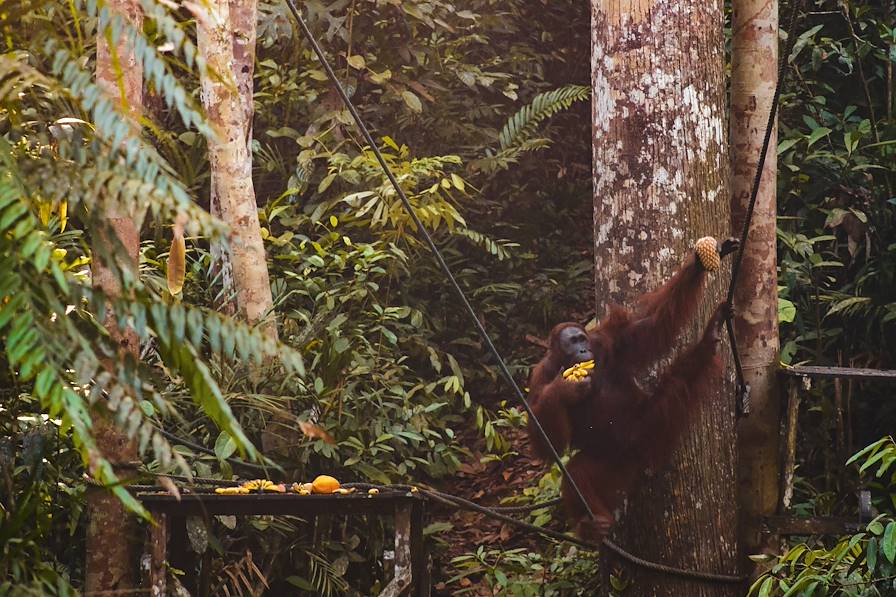Au programme - Les orangs-outans de la Semenggoh Nature Reserve. En compagnie d’un chauffeur-guide anglophone privé, on rejoint, à une vingtaine de kilomètres de Kuching, une réserve consacrée au sauvetage d’animaux victimes de la déforestation ou du trafic. Le travail réalisé avec les orangs-outans est particulièrement remarquable. Ce grand singe arboricole roux a une drôle d'allure, mais quelque chose d’étrangement familier. Cousinage primate, disons. C’est un animal intelligent, capable de combiner et de s’outiller. D’ordinaire, il se déplace discrètement dans la canopée afin de se nourrir et faire son nid pour la nuit. Cette sortie permet de le voir de près, dans des conditions qui lui soient favorables. La survie de l’orang-outan de Bornéo est menacée. Des institutions comme celle-ci invitent à une prise de conscience, sans laquelle Pongo pygmaeus ne sera bientôt qu’un regret de plus.