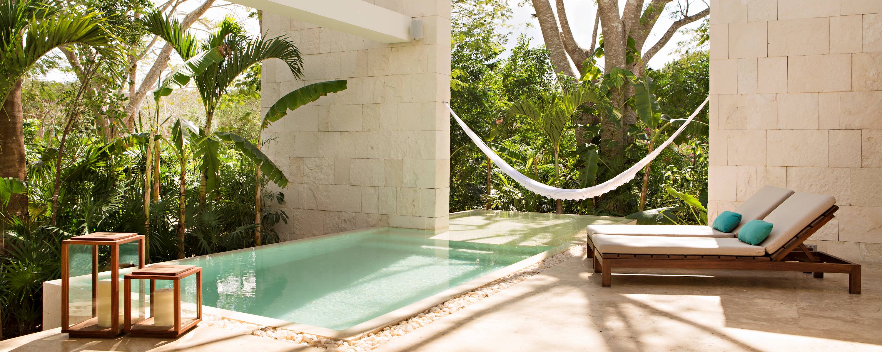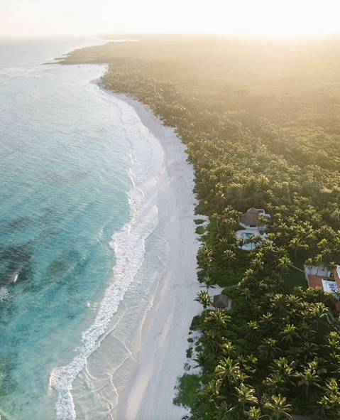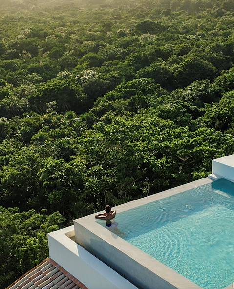 À l'arrivée, transfert privé vers Punta Maroma, un peu au nord de Playa del Carmen. Votre hôtel pour trois nuit se trouve à l’articulation de la plage et de la forêt. D’ailleurs, la villa treetop s'intègre dans cette dernière, qui est classée. Le sable blanc n’est pas loin. C’est bien agréable de prendre de la hauteur dans les palmes, d’avoir sur les arbres de grandes ouvertures nettes, de disposer d’un bassin particulier, d’une intimité scrupuleuse, de la décoration fluide de Paulina Moran, bref de tout un confort blanc, bleu turquoise et bois soigné dans le moindre détail. Un luxe, mais un luxe fait pour vous. Avec cela, des restaurants, qui donnent un joli coup de jeune à la cuisine mexicaine : les couleurs sont dans l’assiette ; un spa, que l’océan inspire ; deux piscines en avant-garde de la mer. Littoral superlatif, en somme.