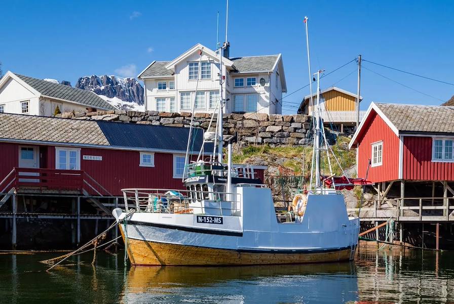 Route jusqu'à l'aéroport, restitution du véhicule de location puis vol direct pour Leknes, le deuxième aéroport de l’archipel des Lofoten. À l'arrivée, prise en charge du second véhicule de location et route pour Sorvagen, sur l'île de Moskenesoya, tout au sud-ouest de l'archipel. En chemin, on croise le village de Nusfjord, parmi les mieux préservés de Norvège et classé au patrimoine de l'humanité.