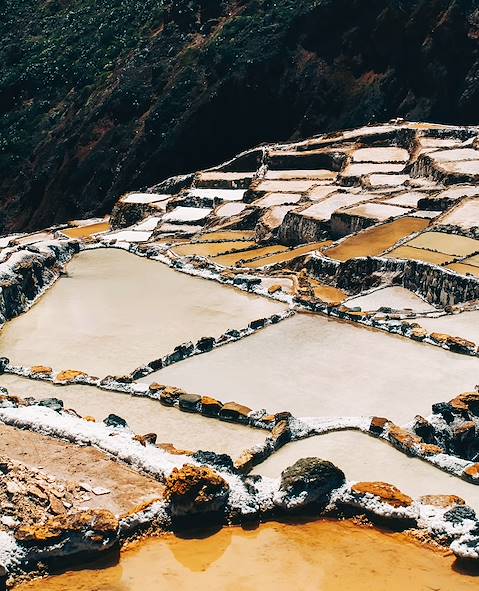 Au programme - Des Salines de Maras aux terrasses de Moray. Au premier coup d'œil sur ce site étonnant ouvert sur le Valle Sagrado, on reste totalement incrédule. Face à nous, un paysage alvéolaire étonnant scintille comme neige au soleil. Or de neige il ne s'agit point, mais de sel. La Pachamama a donné naissance à des salines au cœur des Andes ! D'innombrables petits bassins se superposent sur plusieurs centaines de mètres, alimentés par une source naturelle d'eau salée dont l'origine reste inconnue. À une demi-heure de là, à Moray, se trouvent d'autres terrasses, concentriques cette fois, entourées d'une dizaine de cercles secondaires. Un lieu dégageant une énergie forte, terrain d'expérimentation agricole depuis l'ère précolombienne. Au moyen de grandes pierres conservant la chaleur, les Incas créaient des microclimats différents sur chaque terrasse. Désormais, d'autres passionnés ont pris le relais...
