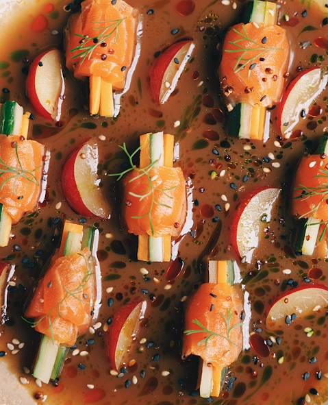 Des pommes de terre, beaucoup – il en existe plus de 3000 variétés au Pérou – et notamment dans la causa limeña ou causa rellena, entrée froide à base de thon ou poulet, purée de pomme de terre assaisonnée, œufs durs et olives ; le célébrissime ceviche, poisson cru mariné dans du citron vert, généralement servi avec patate douce, oignon rouge et plusieurs types de maïs ; l'incontournable pisco sour, cocktail national aux notes acidulées préparé avec du pisco, du jus de citron vert, du blanc d'œuf, du sucre et de l'angostura ; ají de gallina, volaille nappée d'une sauce crémeuse subtilement pimentée, similaire à celle des papas a la huancaína ; lomo saltado, recette influencée par la cuisine chinoise – de la viande en lamelles revenue avec des oignons ; tacu tacu, frichti utilisant les restes de riz et de haricots ; anticuchos, brochettes dont la version traditionnelle est à base de cœur de bœuf ; cuy ou cochon d'Inde, généralement rôti et servi entier ; Pachamanca, plat traditionnel des Andes cuit à l'étouffée sous la terre ; rocoto relleno, poivron farci de viande et fromage ; chupe de camarones, soupe de crevettes ; du piranha ou du kiwicha, variété d'amarante et graine sacrée pour les Incas, aux menus de Pía León et Virgilio Martínez.