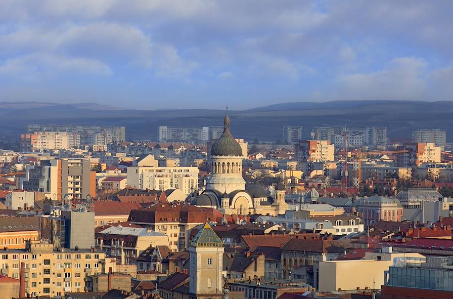 Route pour Cluj-Napoca. Nuit quelques hectomètres au nord du jardin botanique de Cluj-Napoca. L’hôtel est installé dans un bâtiment XIXe et offre une décoration qui confine parfois à un kitsch léger. Couleurs parme, pétrole, anis. Des chambres et des salles d’eau convenablement équipées permettent aux voyageurs de récupérer dans des conditions nominales. Petit déjeuner sur place ; restaurant à portée de promenade. Pôle économique important, Cluj fait aussi office de chef-lieu pour les Hongrois de Roumanie, qui constituent la moitié de la population de la ville. La maison natale de Matthias Corvin (1443-1490), grand monarque hongrois, a valeur emblématique.