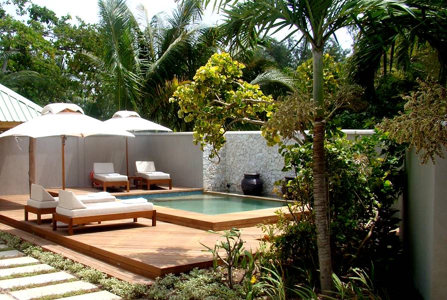 Pour que la tribu ne se marche pas dessus, nous avons réservé deux cottages. Tous deux sont joliment blottis entre les palmiers, face à la mer et littéralement à quelques pas de la plage. Ils arborent une élégance contemporaine qui emprunte au registre tropical sa simplicité et sa fraîcheur – du bois exotique de belle qualité, des teintes naturelles. Les espaces sont ouverts sur l'extérieur – on peut d'ailleurs prendre sa douche en plein air (mais à l'abri des regards) – et sur une jolie terrasse ombragée. En quelques pas, on rallie le restaurant, le bar, la piscine et le spa.