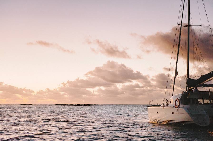 Après le petit déjeuner face à la plage de Port Launay, on s'en va caboter jusqu'à l'île Thérèse, îlet miniature flottant au large de l'Anse l'Islette. Le cadre, paisible, est propice à la baignade, au snorkeling mais aussi au paddle. Au pied du mont Thérèse, la plage, sublime, étale sa blancheur sur 700 mètres, ourlée de cocotiers et des takamaka. On a donc beaucoup à faire et à voir. Cela tombe bien, c'est ici que l'on passe la nuit, au mouillage, après un merveilleux dîner (à bord) face au coucher du soleil.